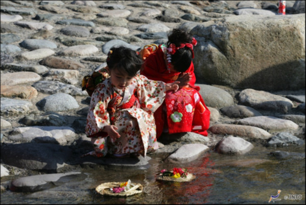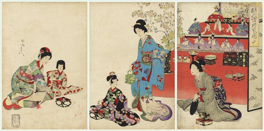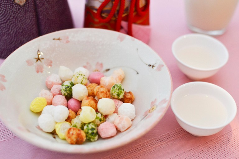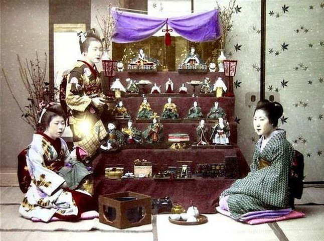 Lors de Hina-matsuri, elles revêtent leur plus beaux kimono et invitent toutes leurs copines à boire du thé et à déguster des friandises (hina-arare) et des gâteaux (hishi mochi).