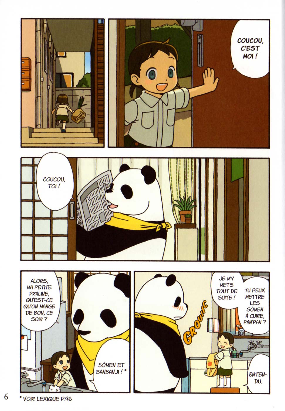 Panettone, que tout le monde appelle Pan’Pan, est un panda qui travaille comme gardien à la résidence Kanda. Il habite avec Praline, une fillette débrouillarde qui lui prépare les meilleurs petits plats. Chacun veille ainsi l’un sur l’autre et s’entraide dans tous les moments de la vie : qu’il s’agisse de choisir un nouveau foulard pour Pan’Pan, d’accueillir les nouveaux voisins ou encore de préparer les fêtes de Noël.Au fil des pages, le petit monde de Pan’Pan et de Praline s’enrichit de personnages tout aussi attendrissants (Rose en admiration devant le panda, Paprika la tête de mule…) qui viennent mettre de l’animation dans leur quotidien !