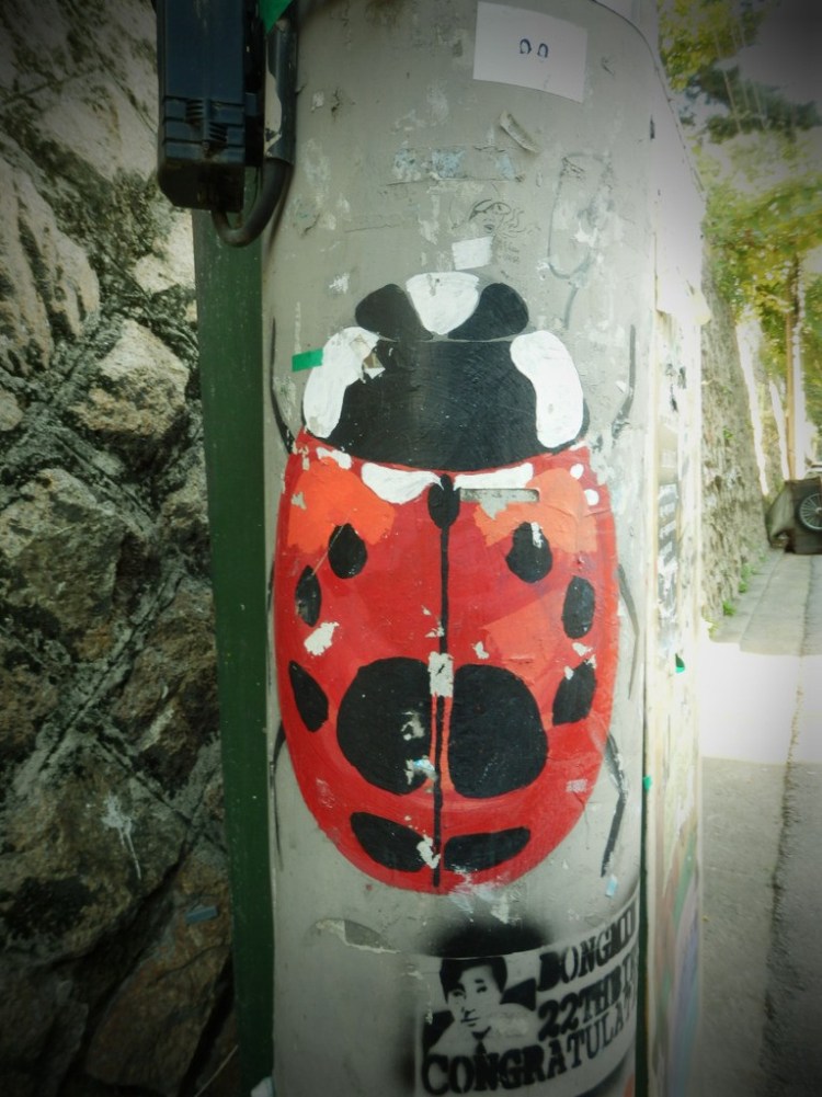 – » Que nenni ! Des graffiti il y en a, malheureuse ! Prends ces clichés et montre au monde entier que Seoul possède également ses Artistes de rue ! « Bon… elle ne l’a pas vraiment formulé de la sorte… c’est vrai. Mais pour notre plus grand plaisir, Mélanie est bien partie en quête d’images et nous a rapportés quelques belles peintures dans sa valise qu’elle m’a permise de publier.