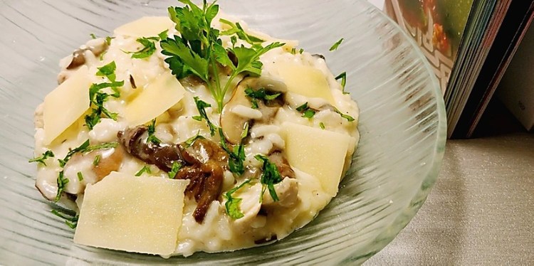 Le riz est moelleux et crémeux. Le goût de parmesan est prononcé. C’est vraiment bon et cuit à la perfection. Je n’en reviens pas.