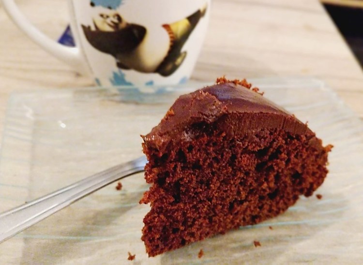 Heureusement que la ganache du glaçage vient apporter un peu de douceur parce que la texture du biscuit reste assez spongieuse. Cependant avec une boisson chaude, on lui fait sa petite affaire sans rechigner.