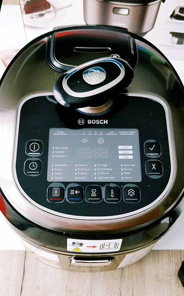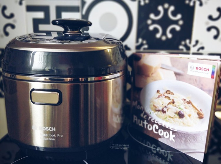 Puis, j’ai déniché le monstre ! Celui qui allait trôner sur mon plan de travail, L’AUTOCOOK PRO de BOSCH et son livre de recettes.