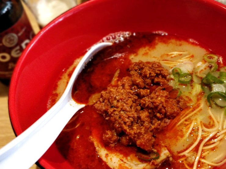 Il y a 5 types de ramen dont un veggie et un au poulet. Les 3 autres sont à base de porc servis dans un riche tonkotsu (bouillon d’os de porc) à l’aspect laiteux.