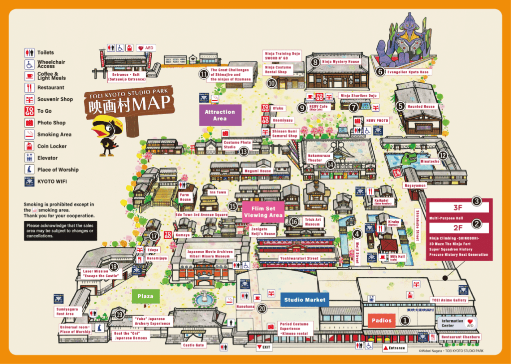 Le Toei Kyoto Studio Park (東映太秦映画村), également connu sous le nom d’Uzumasa Eigamura, est un parc à thème unique situé à Kyoto, au Japon. Il combine un plateau de tournage de films historiques avec des attractions interactives, offrant aux visiteurs une immersion dans l’époque Edo et l’univers du cinéma japonais.