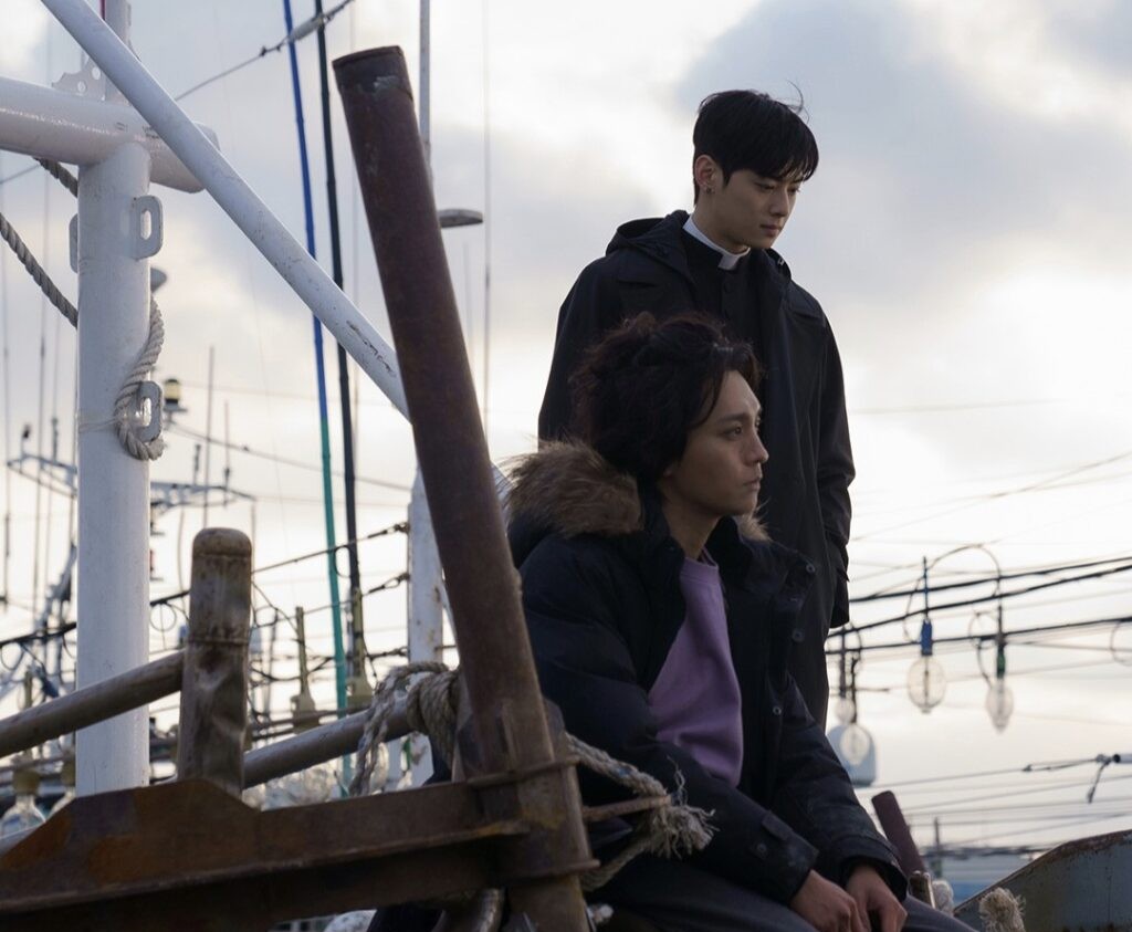 Impossible de ne pas faire une parenthèse sur Cha Eun Woo. Son personnage de prêtre-exorciste-beau-gosse-un-peu-psychopathe-avec-des-loupiottes-dans-les-yeux est là pour sauver des âmes… et pour faire chavirer le cœur des demoiselles à chaque sourire. Malheureusement, je trouve qu’il est un peu sous-utilisé, mais sa simple présence rehausse chaque scène.