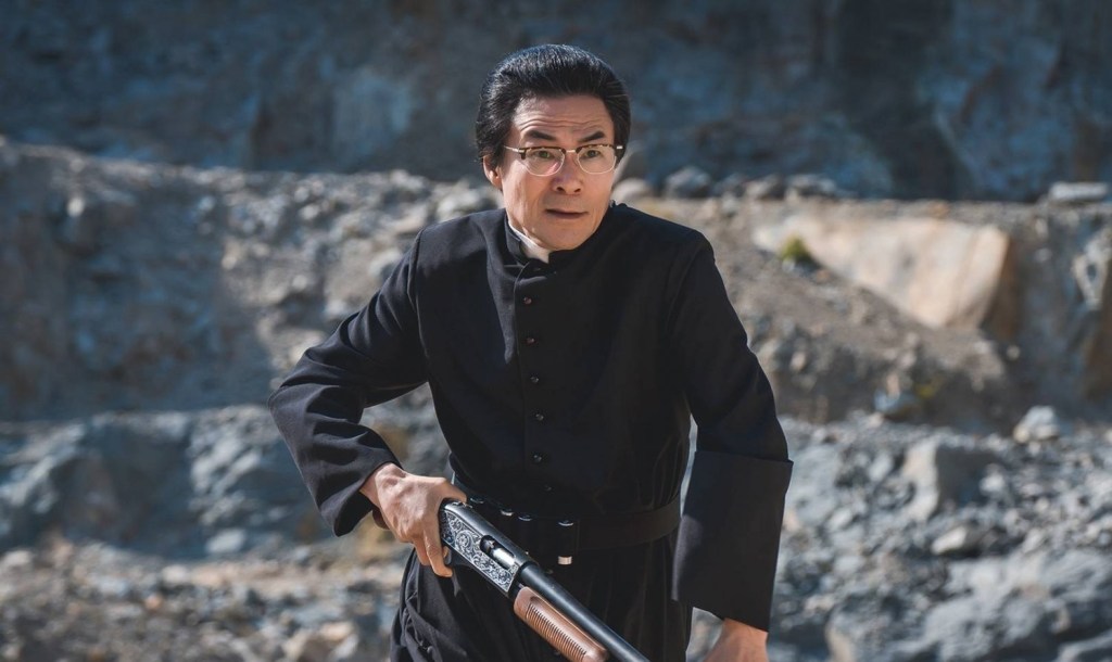 Toutes les portes des enfers s’ouvrent – ça en fait du peuple à Jeju ! Une armée de grands machins enragés débarque. Et v’là que ça tire avec des balles d’eau bénite made in Vatican. Excalibur triple de taille. Le prêtre BG se prend pour Gojo avec supplément led dans les yeux ! En parlant d’oeil… d’autres ont de la poussière de perle dedans. Bref, C’est trop ! Autant dans un webtoon, ça passe. Autant dans un drama, c’est un peu plus difficile à avaler.